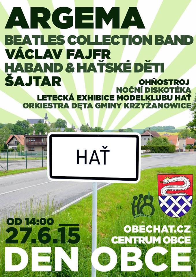 Pokud ještě nemáte na sobotu 27. 6. program, pak bychom vás rádi pozvali na „Den obce Hať“, který se koná k příležitosti 765. výročí od první písemné zmínky o založení obce Hať.