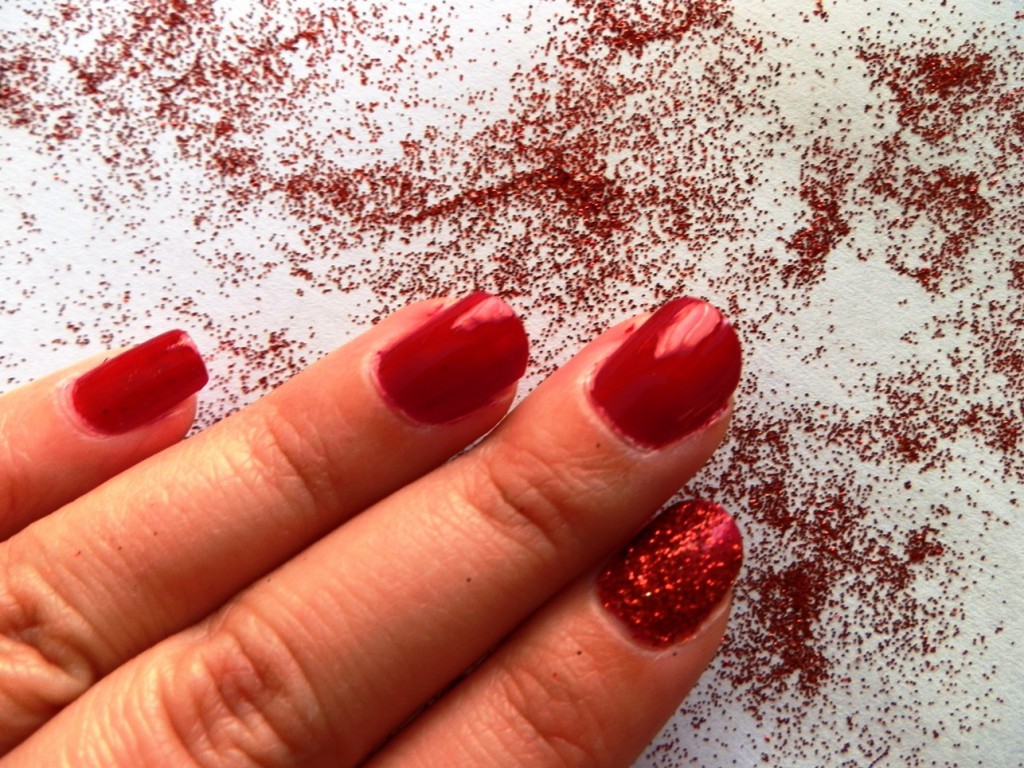 Chcete mít na Štědrý večer vánoční nehty, ovšem šikovností a umem moc neoplýváte? Veškeré tutoriály, jak si nalakovat miniaturní sobíky vám jsou zcela k ničemu? I přes veškerou snahu vám totiž vždy na nehtech vznikne nevzhledný a těžko rozpoznatelný flek? Pak zapomeňte na infantilní postavičky a vsaďte na lesk a třpyt.